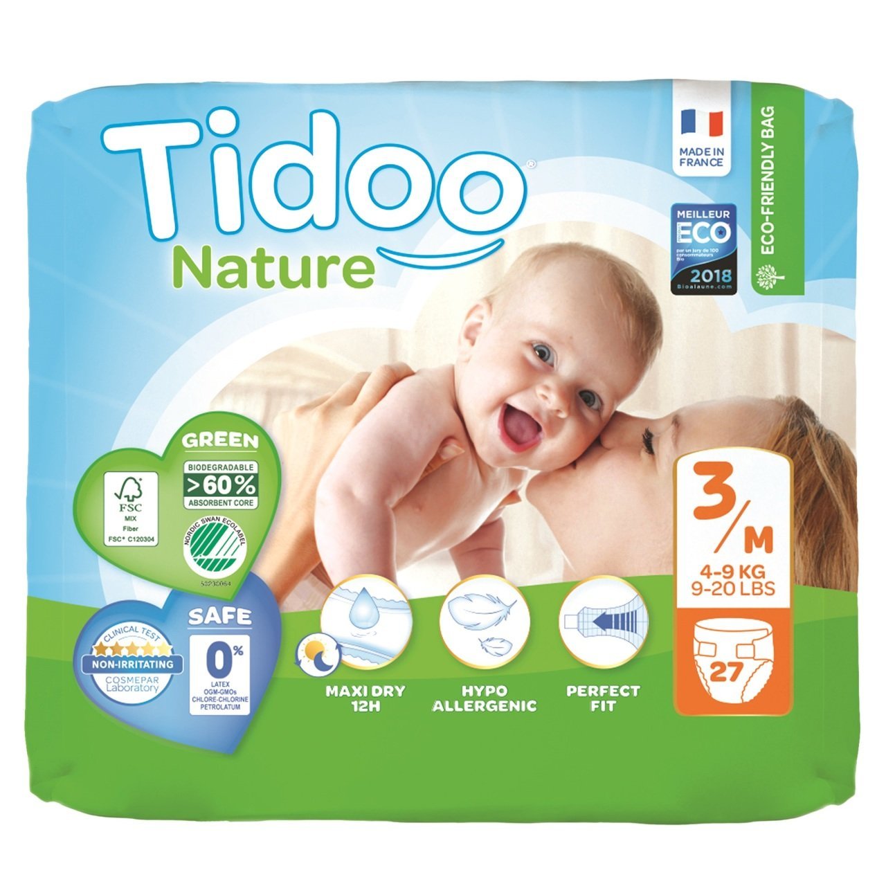 * Fransa'da imal edilen Tidoo ekolojik bebek bezleri 12 saat